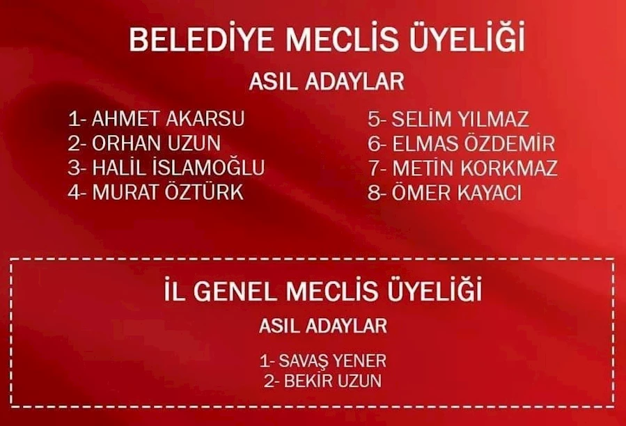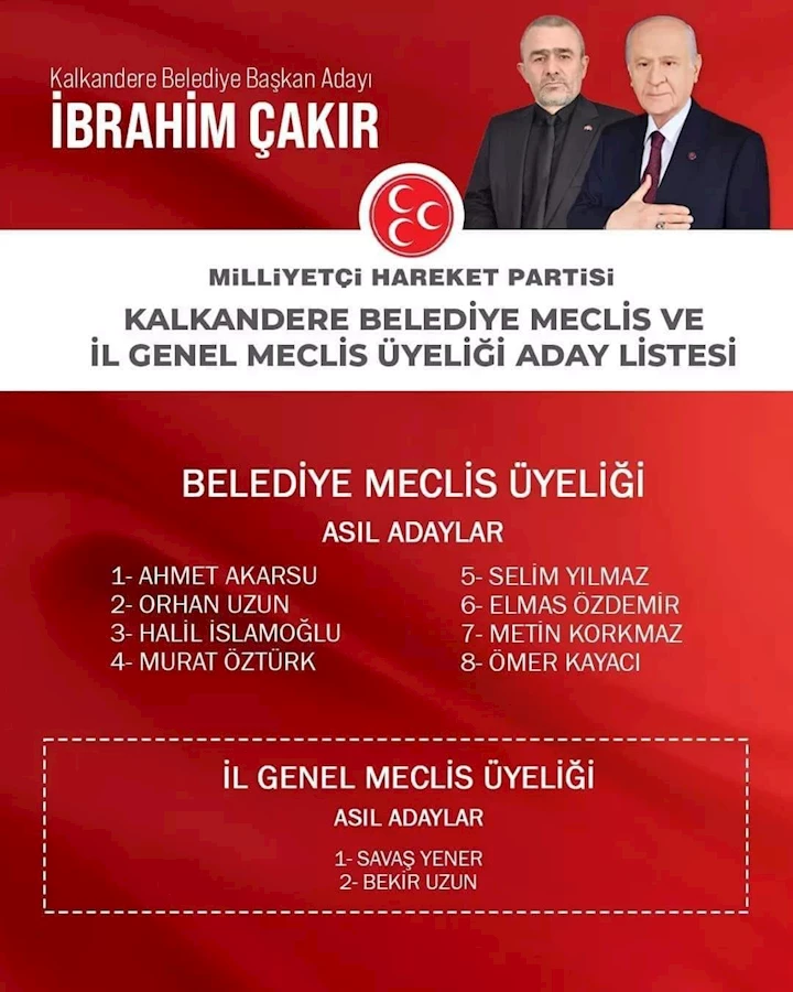2024 Yerel Seçimler Kalkandere MHP Aday Listesi ;