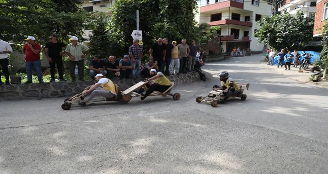 Rize'nin Çamlıhemşin ilçesine bağlı Dikkaya köyünde tahta arabalarla gerçekleştirilen 'Laz Ralli', renkli görüntülere sahne oldu.