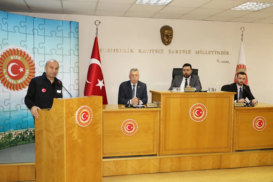 Toplantıdaki gündem maddelerinin görüşülerek karara bağlanmasının ardından İl Afet ve Acil Durum Müdürü Mehmet Salih Avcı, Rize’de sürdürdükleri yatırım ve faaliyetlerle ilgili meclis üyelerine bilgilendirme sunumu gerçekleştirdi.