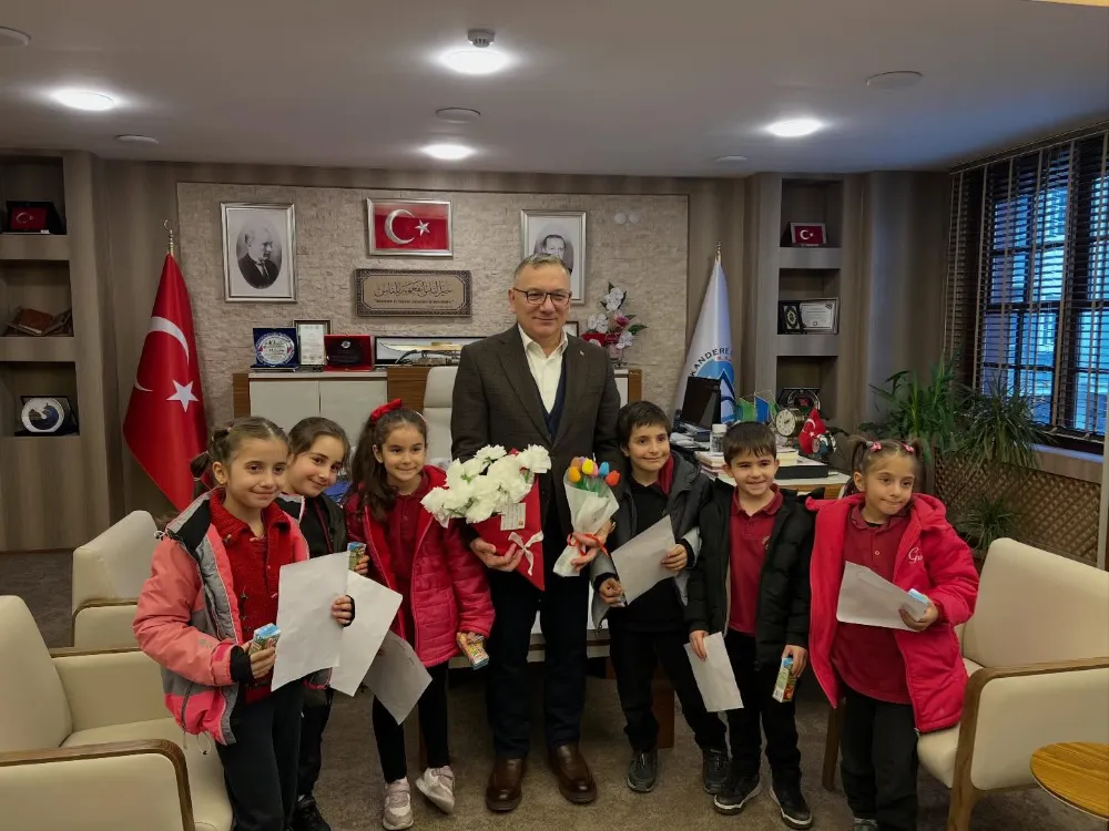 Kendi elleriyle hazırladıkları çiçekleri takdim eden minikler, belediye çalışmalarıyla ilgili merak ettikleri soruları yöneltti. Minik öğrenciler sordu, Kalkandere Başkanı Sayın Mehmet Yılmaz cevapladı.